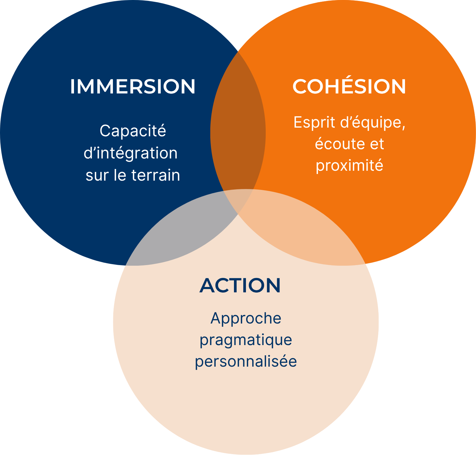 Nous nous engageons à offrir une action efficace, orientée terrain et résultat durable, respectueuse de vos équipes.